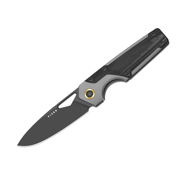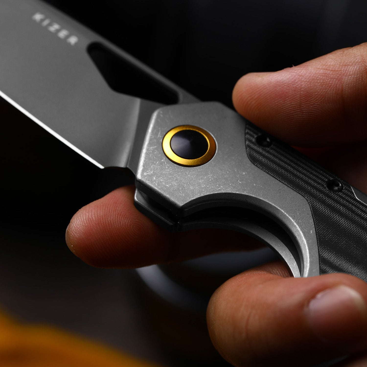 With titanium handles, micarta inlays, and a 3.47" Elmax drop point blade, the Serpentine delivers clean slicing performance backed by one of the silkiest actions Kizer offers. The thumb hole and front flipper combo gives you effortless deployment, and drops shut with that satisfying feel. A collector-worthy folder that’s just as happy earning pocket time.