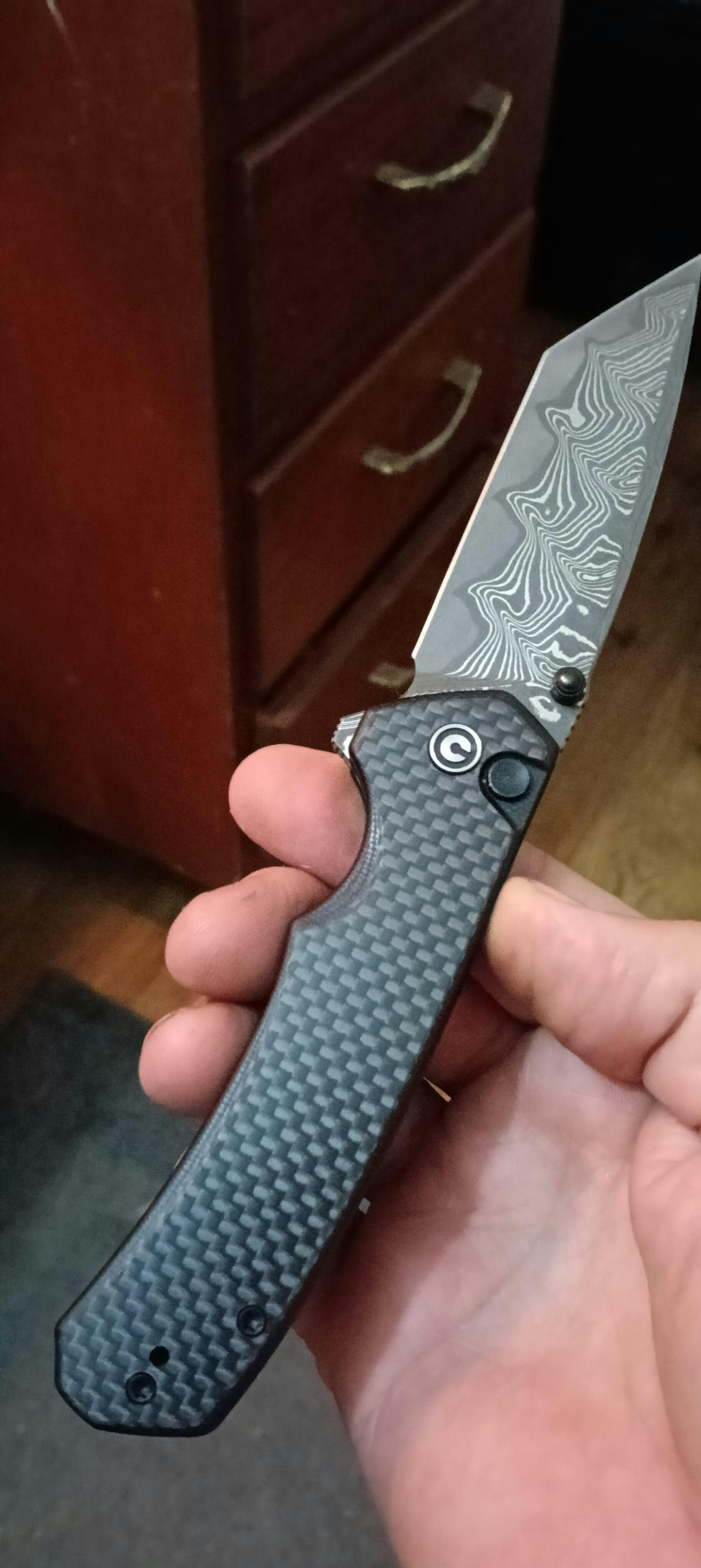 • Twill carbon fiber over G10 – Lightweight durability with added style