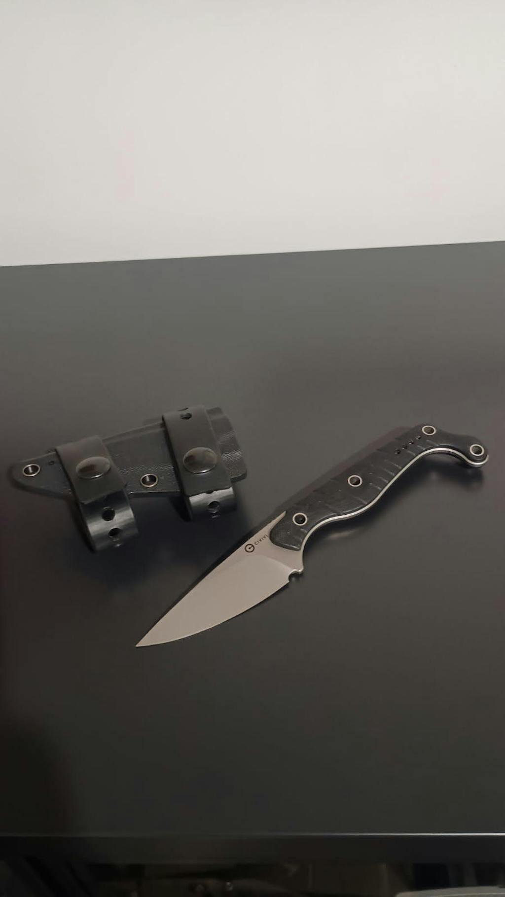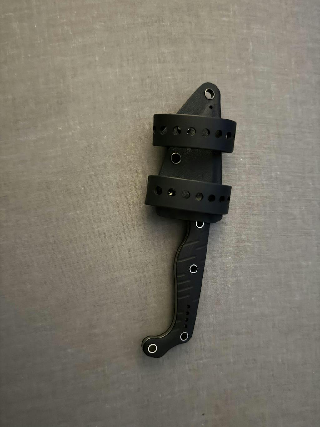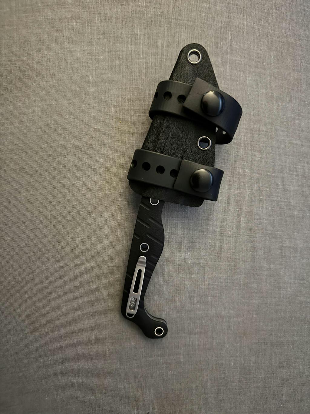- Secure custom moulded taco style kydex sheath with black straps
