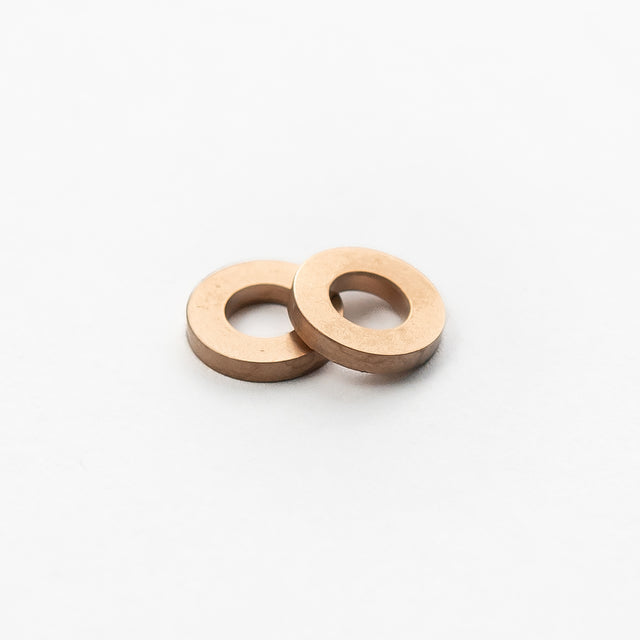 Pivot washers CNC machined and hand finished from solid phosphor bronze. These are intended to replace cage bearings of the same same. Please check the Skiff Bearing Compatibility Chart to check what size bearings, and therefore what size washers you would need for your knife.