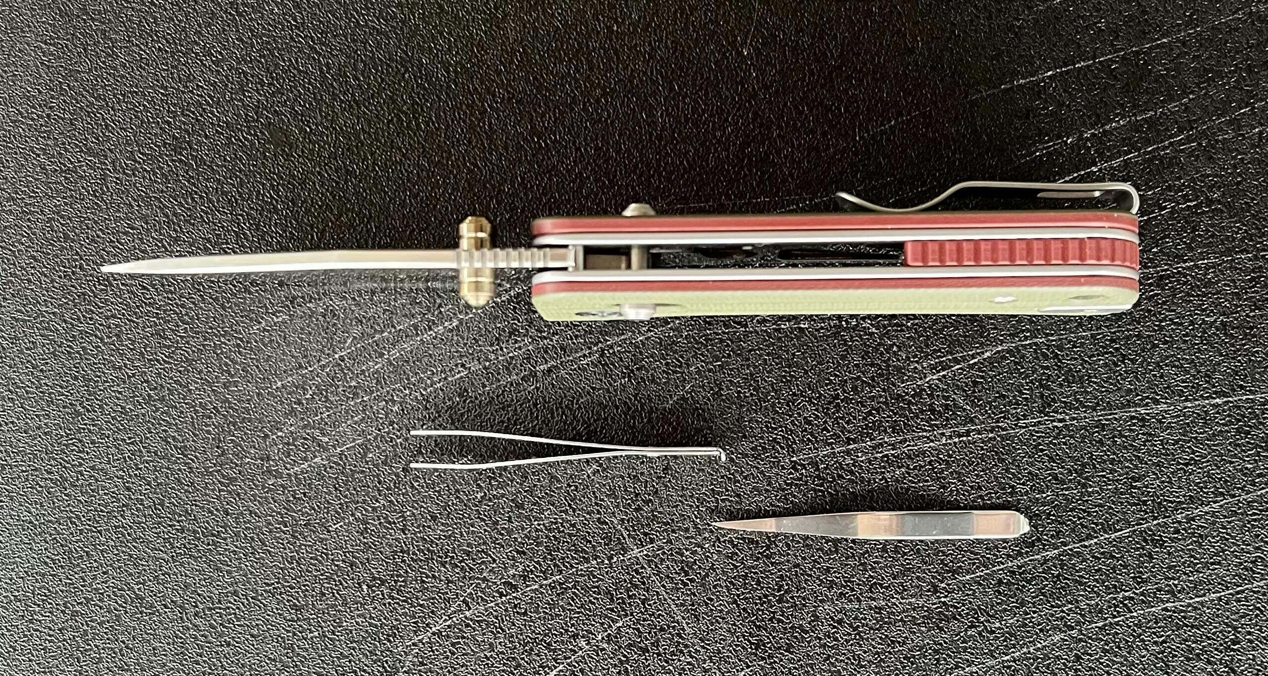 - Stainless Steel Tweezers and Toothpick stowed in the handle