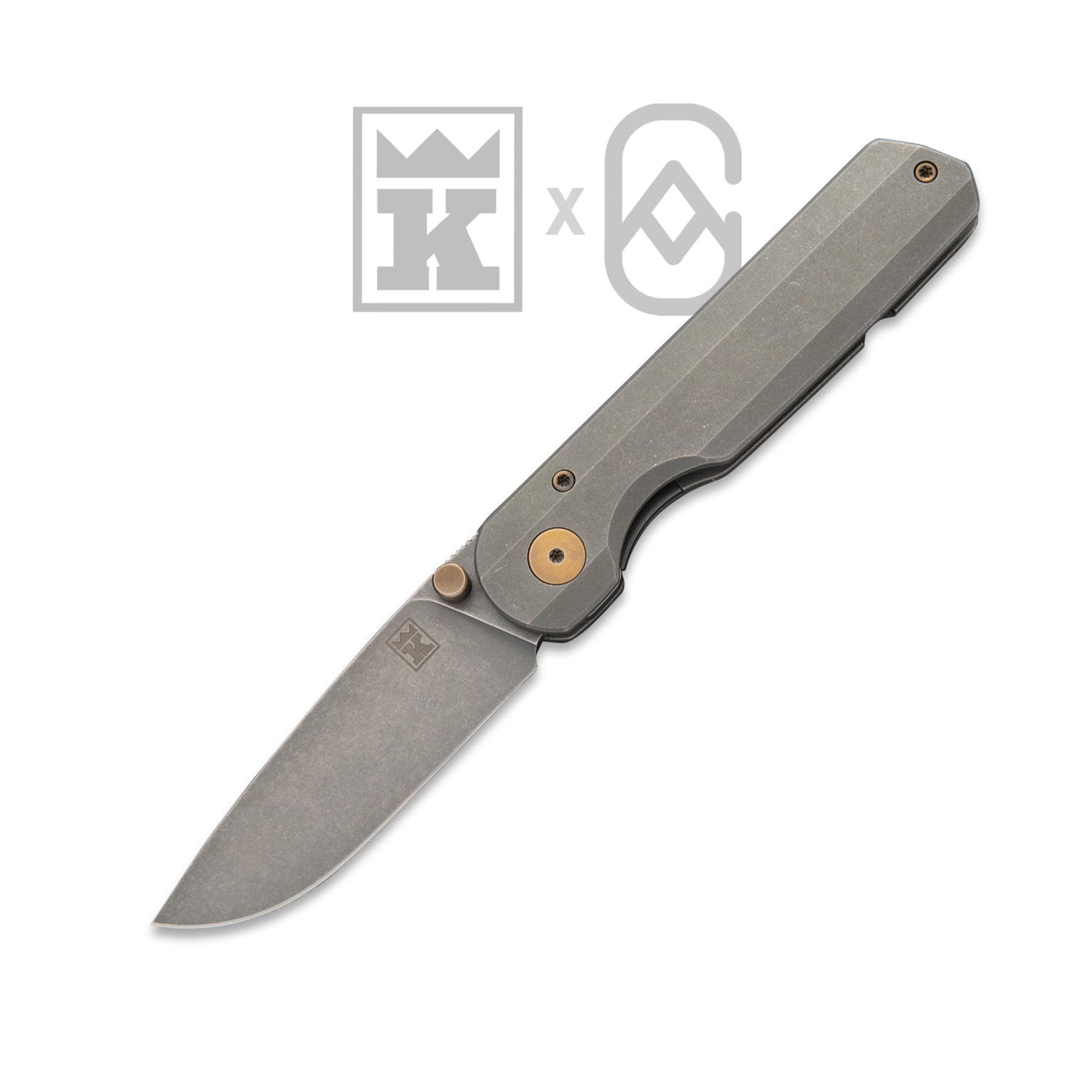• Hand finished by Tim Kingsford with a sandblasted and stonewashed handle, dirty bronze anodized hardware and internal collaboration logo laser engraved inside the handle, alongside it's edition numbering eg. 1/9.