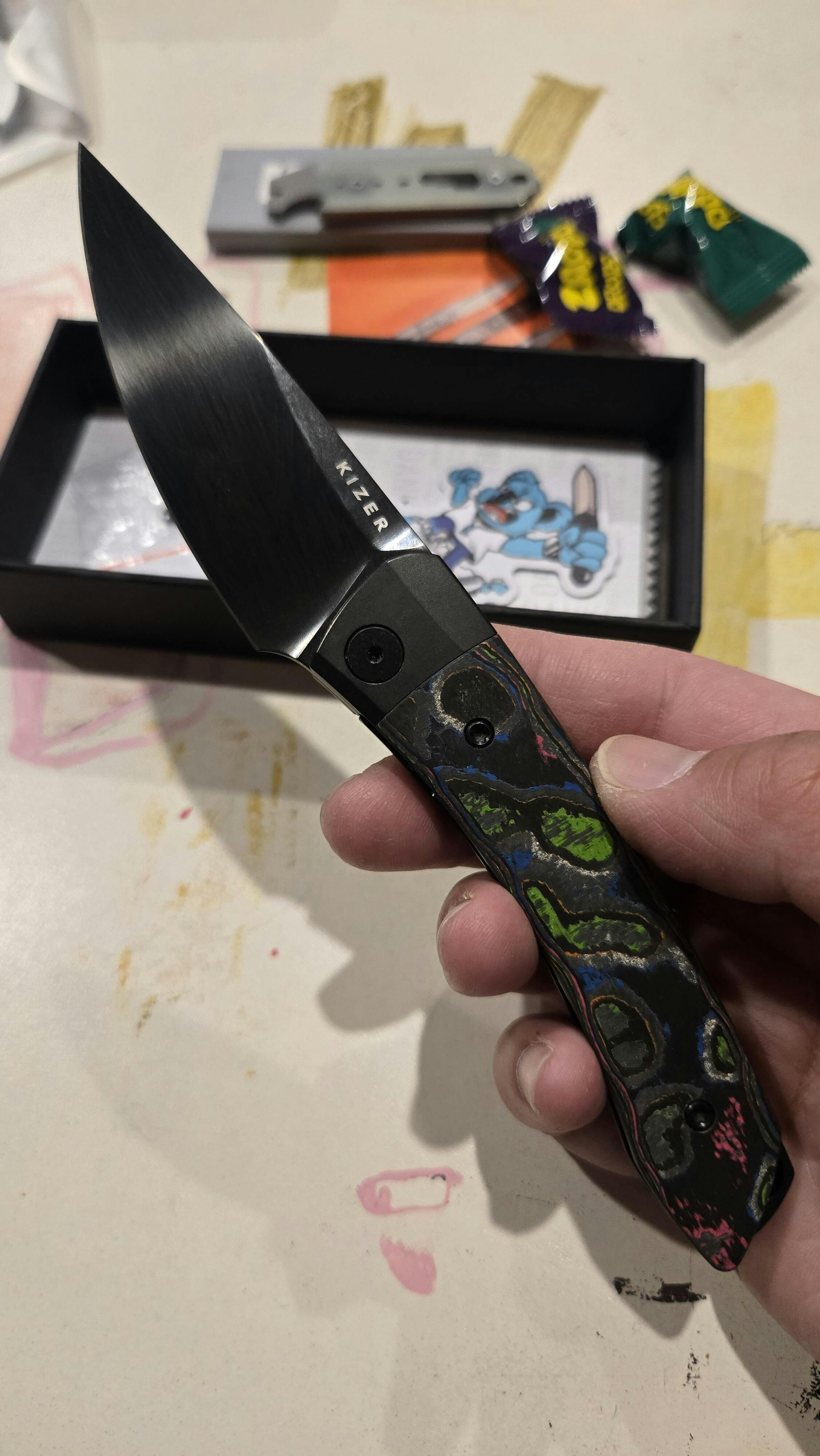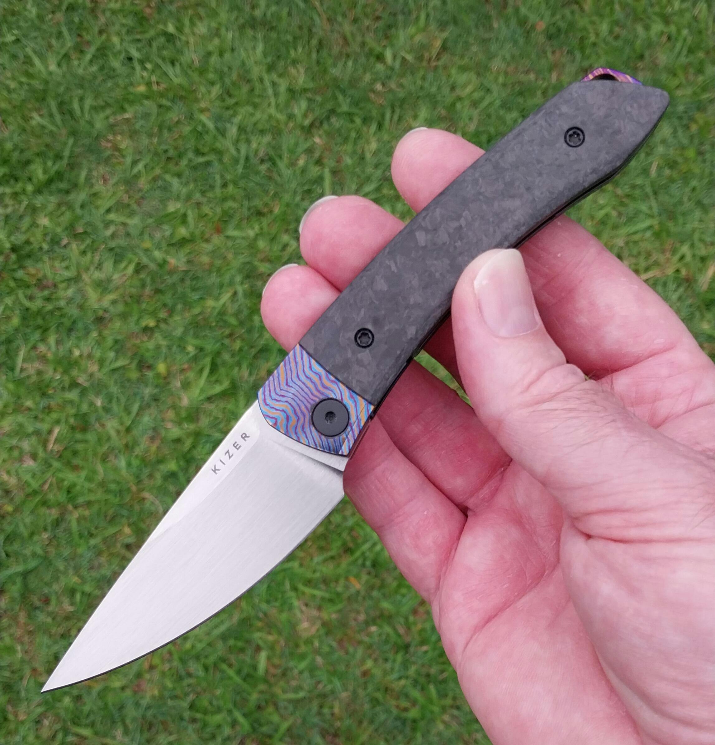 The Kizer Mini Momo boasts the same great profile as the previously released Momo, but shrinking down it's huge size to a still generous 3.20" blade with a 7.35" / 186.7mm overall length. The Momo is loved for it's versatility as an EDC or food prep knife, and the Mini Momo continues this in a more compact form.