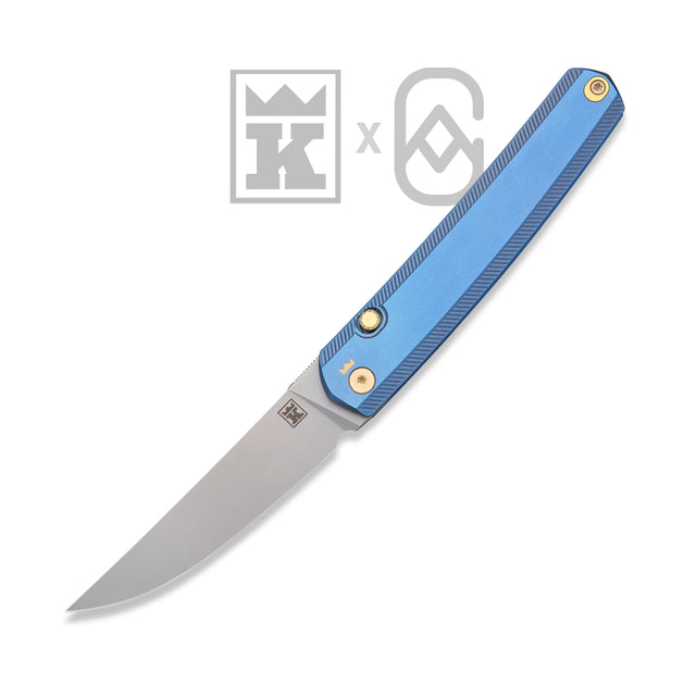 When Tim from Kingsford Knives approached us with collaborating on his KwaiKing production knife, we had to go with a royal blue anodising as a direct nod to the Okinawan Blue Zone, paired with gold stonewashed hardware to reflect balance, longevity, and appreciation earned over time. Each production KwaiKing knife is individually anodised by Tim, making every piece subtly unique.