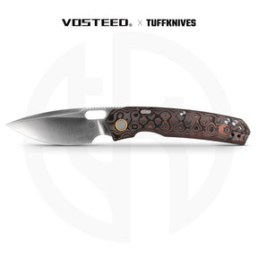 The Vosteed Psyop, designed with Geoff Blauvelt (TuffKnives), takes EDC into new territory. Inspired by the raw grit of stone and the fluid grace of water, this edition pairs Elmax steel with striking Fat Carbon handles that blend performance and artistry. Each pattern is unique, offering depth and contrast that shift with the light. With an Elmax blade ground for slicing and piercing, a button-operated top liner lock thatโs fidget-friendly yet rock-solid, and contoured carbon scales that feel as good as they look, the Psyop proves that toughness and style can coexist without compromise.