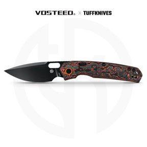 The Vosteed Psyop, designed with Geoff Blauvelt (TuffKnives), takes EDC into new territory. Inspired by the raw grit of stone and the fluid grace of water, this edition pairs Elmax steel with striking Fat Carbon handles that blend performance and artistry. Each pattern is unique, offering depth and contrast that shift with the light. With an Elmax blade ground for slicing and piercing, a button-operated top liner lock that’s fidget-friendly yet rock-solid, and contoured carbon scales that feel as good as they look, the Psyop proves that toughness and style can coexist without compromise.