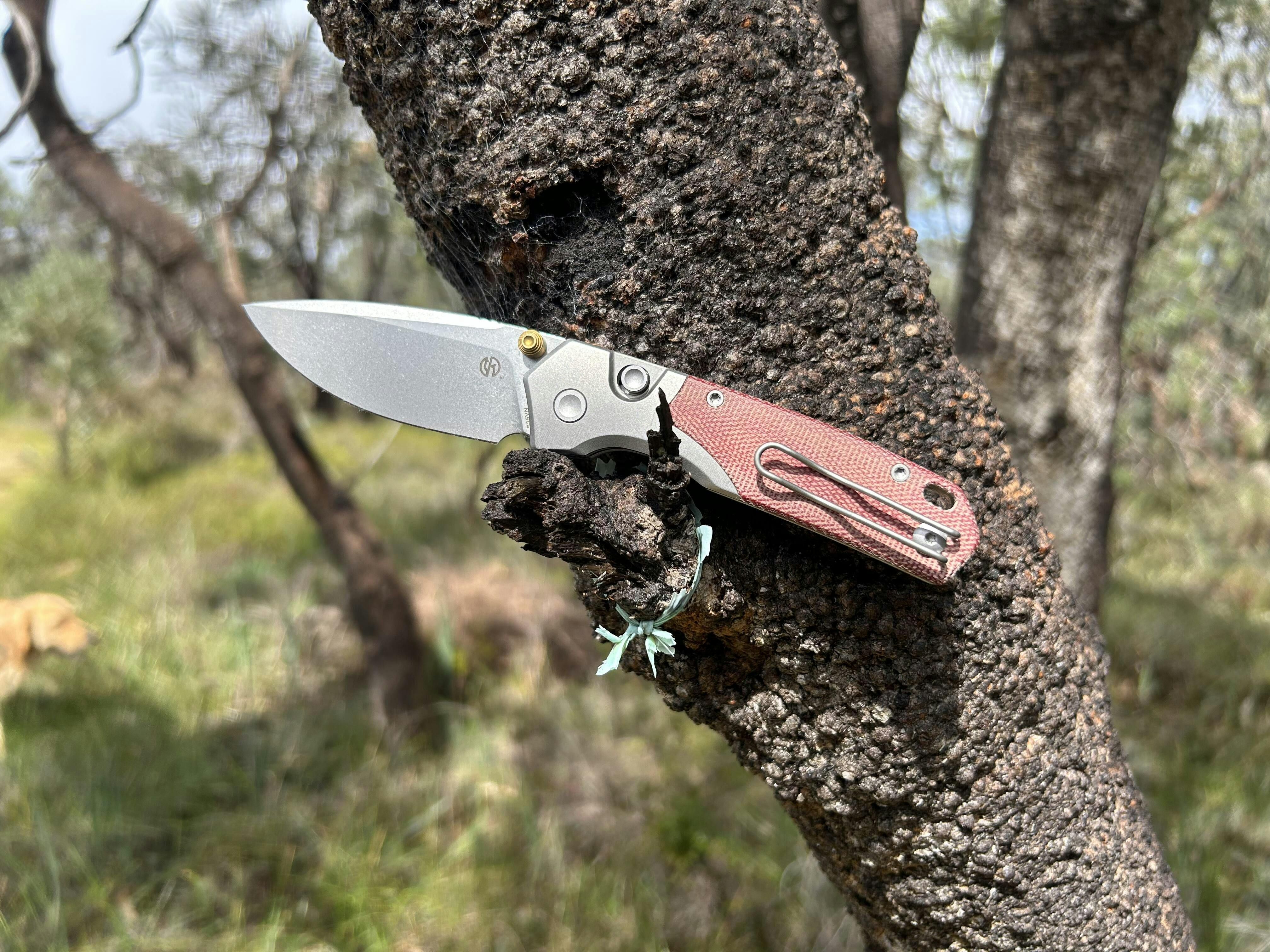 Psyop 299 | Red Micarta + Stonewashed S35VN - A2217 is backordered and will ship as soon as it is back in stock.