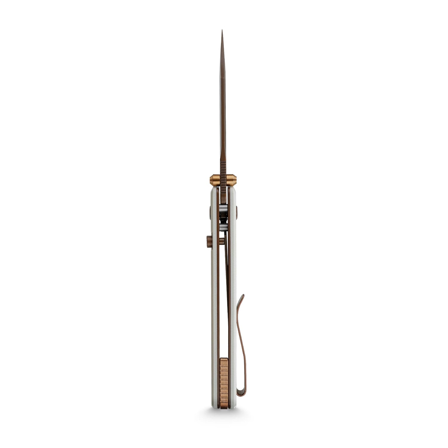 Raccoon 2.0 - Top Liner Lock | White G10 + 14C28N Bowie - A2925 is backordered and will ship as soon as it is back in stock.