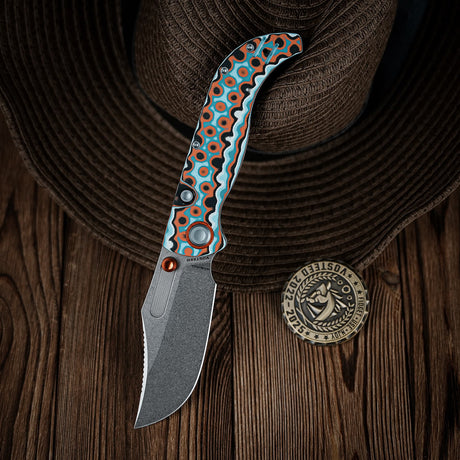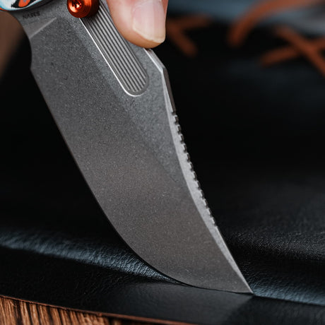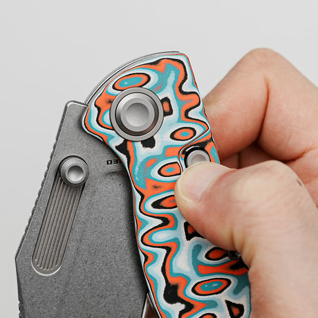 Porcupine Thumb Stud | Copper Raindrop Micarta + Stonewash 14C28N - A2613