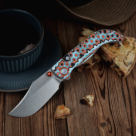 Naga | Coral Orbit Bamboo Micarta + Stonewash S35VN - A3907