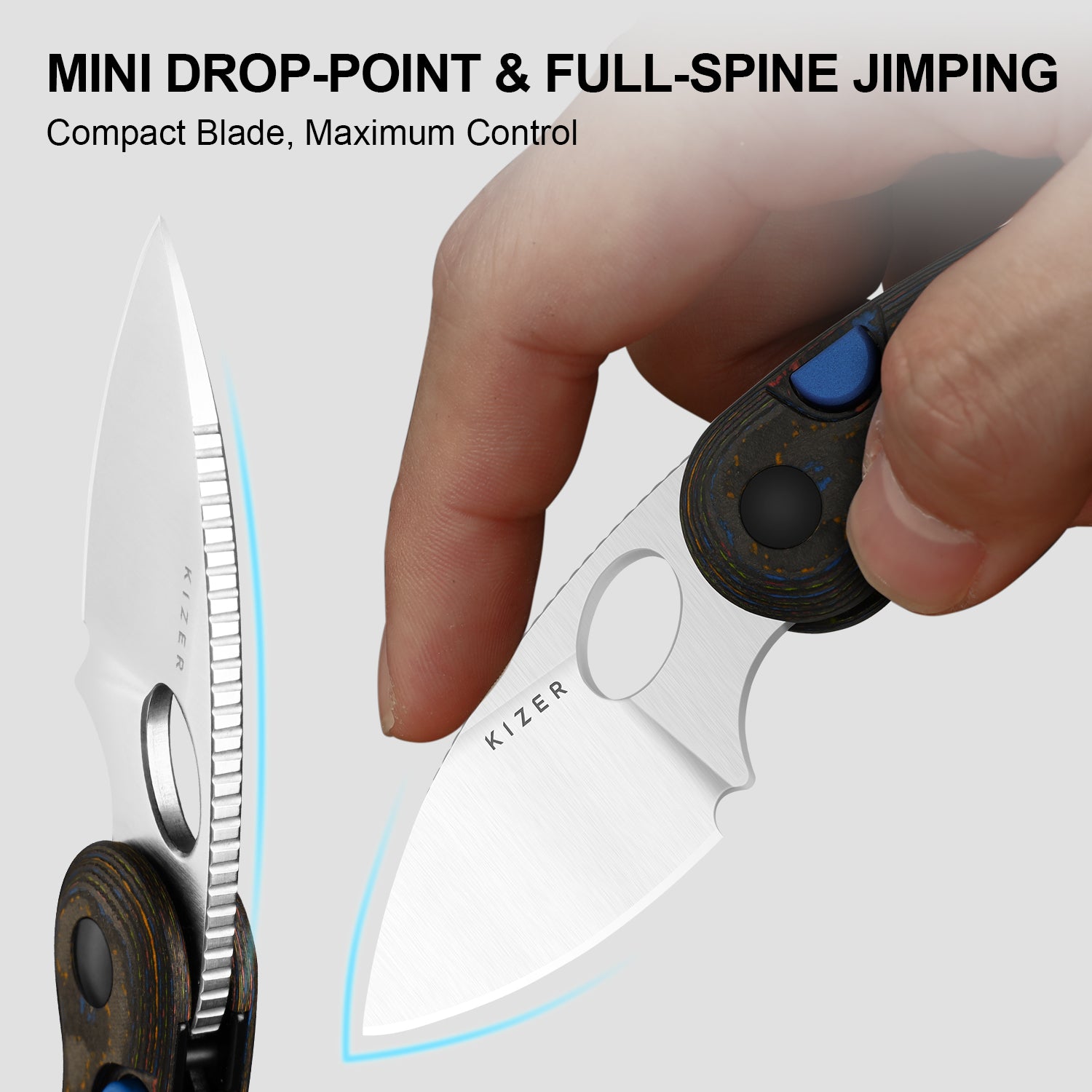 The Kizer Microbe is a true pocket rocket. Small enough to disappear into your 5th pocket, yet ever ready to tear into packages & daily tasks. Its closed profile is inspired by microscopic life, but once opened, it fills the hand surprisingly well, thanks to the curved handle and generous finger choil that allow a confident four-finger grip.