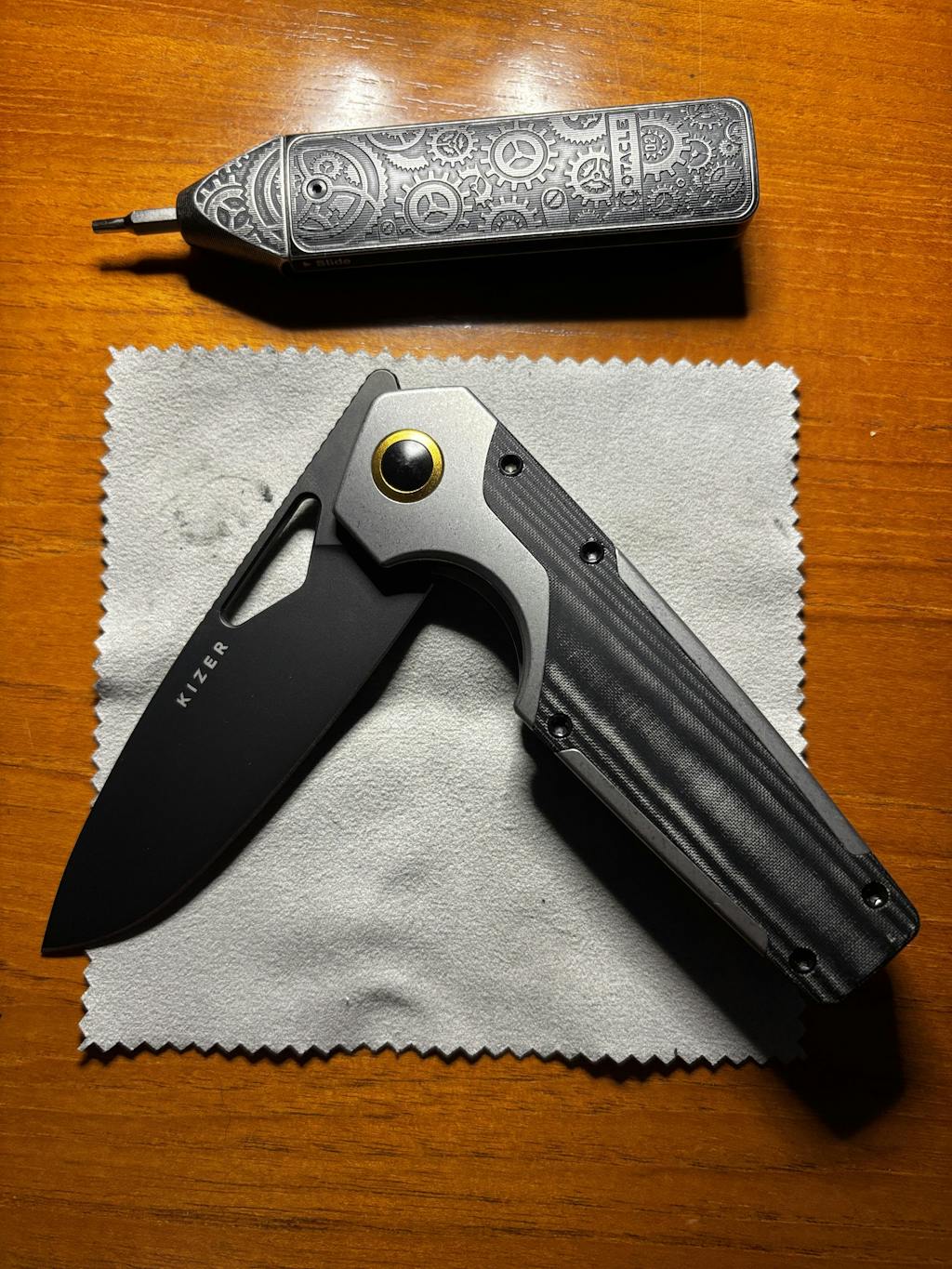 - Titanium frame with micarta inlays – lightweight, premium, and durable