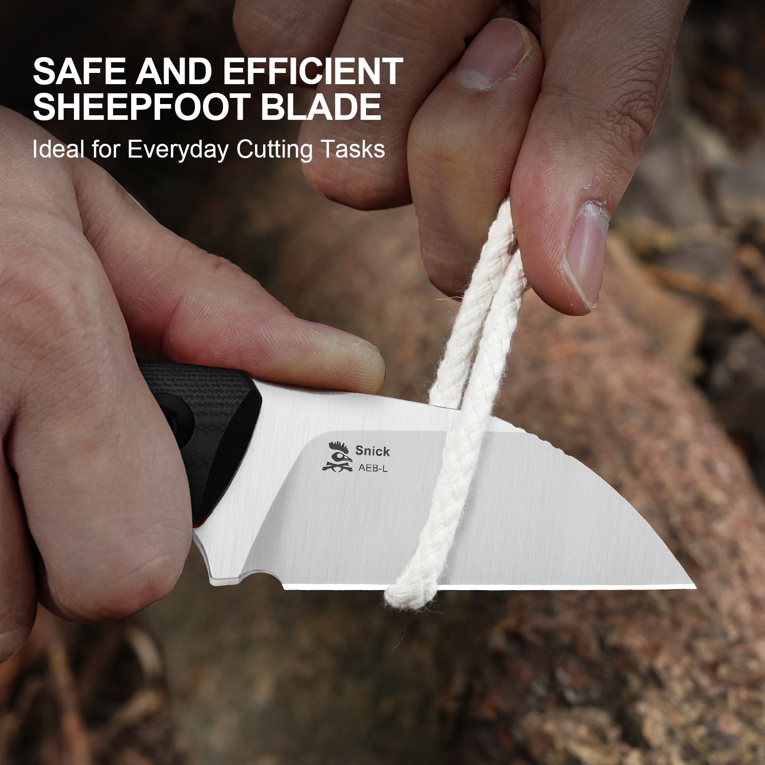 Built on a skeletonised full-tang foundation, the sheepsfoot blade gives you loads of controlled cutting power without unexpected punctures, while the sculpted dual finger grooves keep the knife locked into your hand. And those two-tone G10 scales? Tough, weatherproof, and grippy - with just the right touch of style to make the Snick feel as good to look at as it does to use.