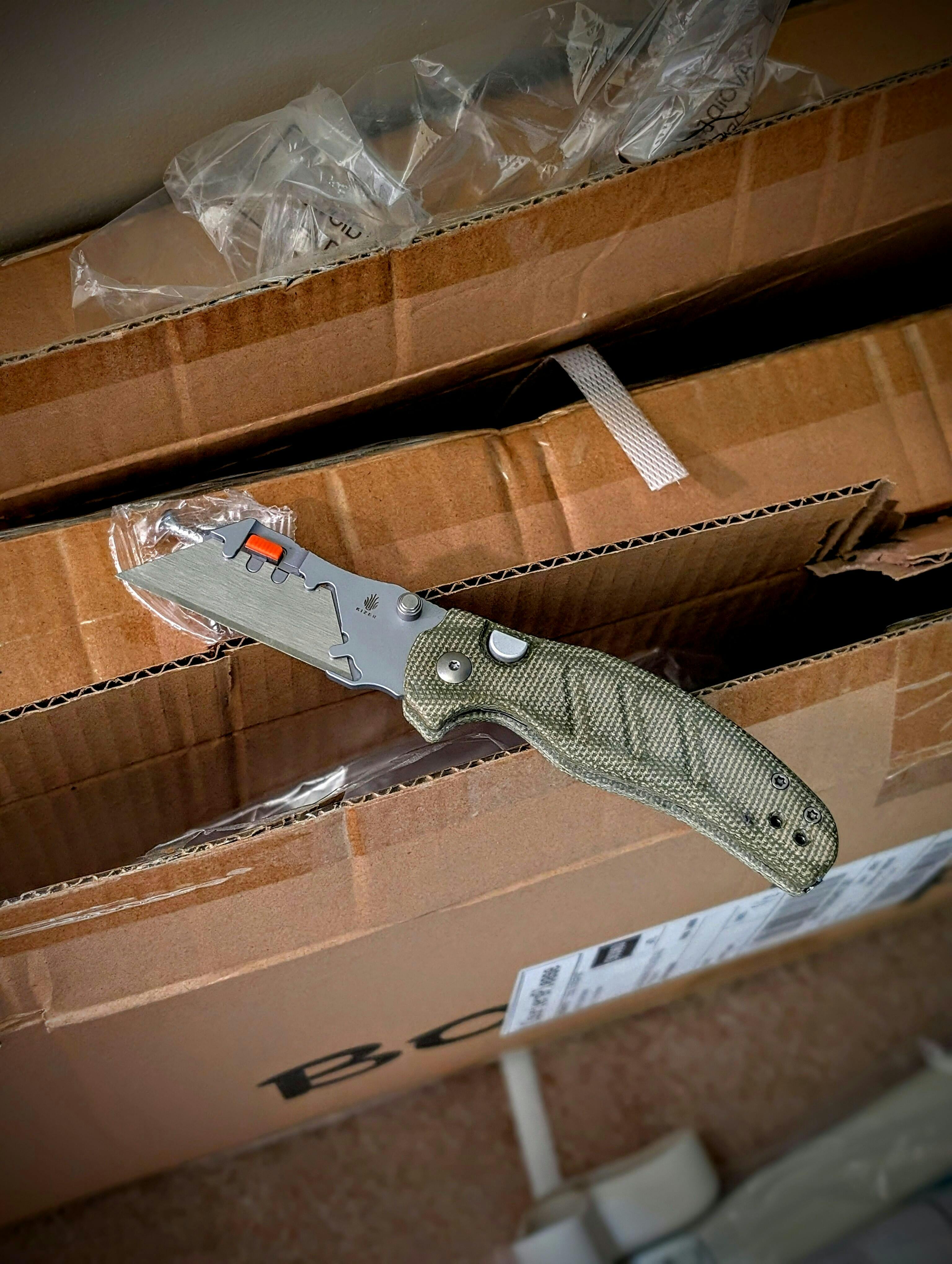 Chris Conaway’s legendary Sheepdog gets a hard-use upgrade with the Kizer C01C Uti 2 — leaner, tougher, and built for people who actually use their knives. This folder takes the cleaver-inspired silhouette of the original C01C and pairs it with a refined quick-swap 5Cr15MoV razor blade system, giving you a fresh, sharp edge whenever the job demands it. Ergonomic green micarta scales lock solid in your hand, while the deep-carry reversible clip keeps it discreet and secure in your pocket. One-handed button liner lock deployment is smooth and fast, so you can get to work without fuss. Field-ready, unapologetically tough, and practical as hell — the C01C Uti 2 is the knife that earns its keep every day.