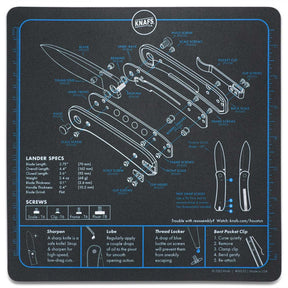 Remember that time we told you we believe in maintaining your tools? And that time we told you could disassemble your Lander knife without voiding your warranty? This Shop Mat is the proof. The exploded schematic shows you where every little piece and part goes so you can put your knife back together, easy peasy.