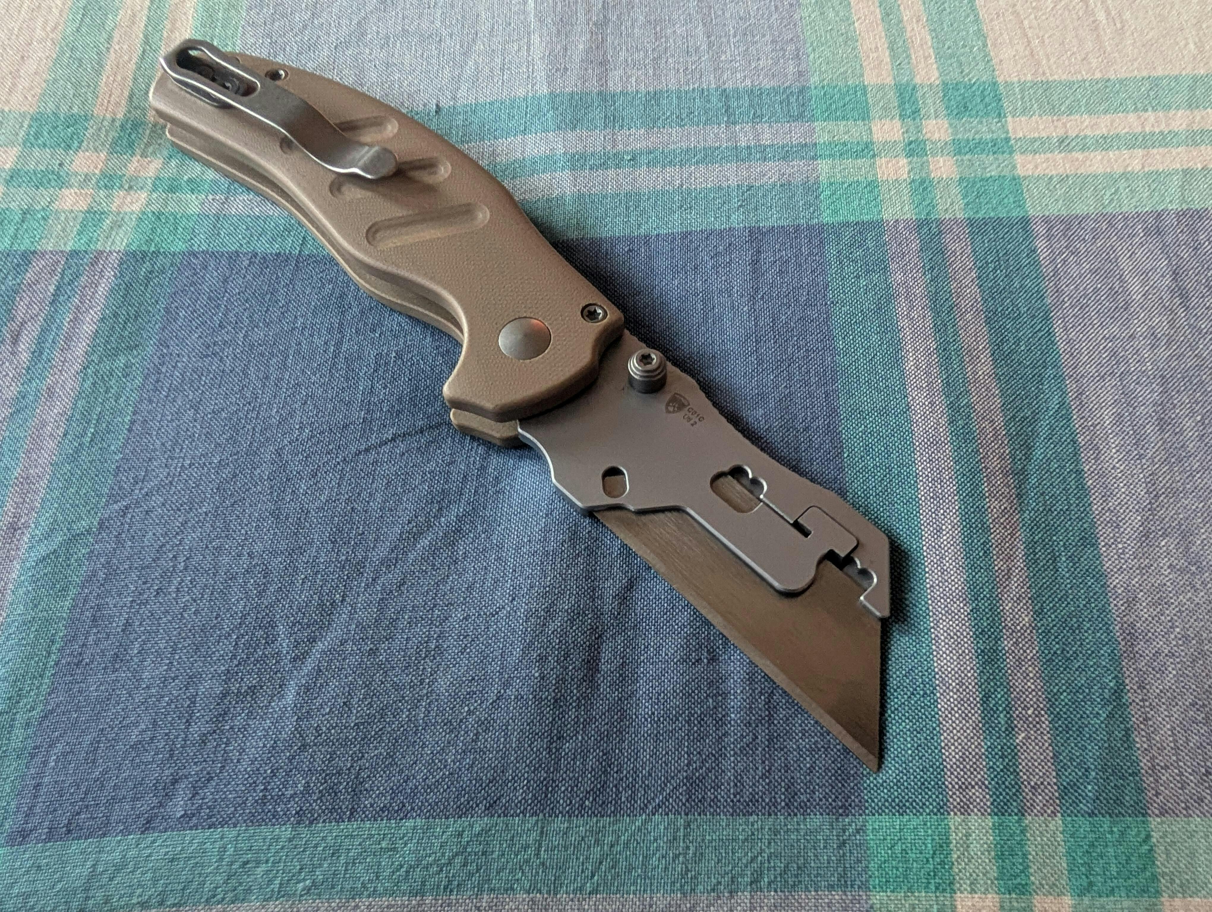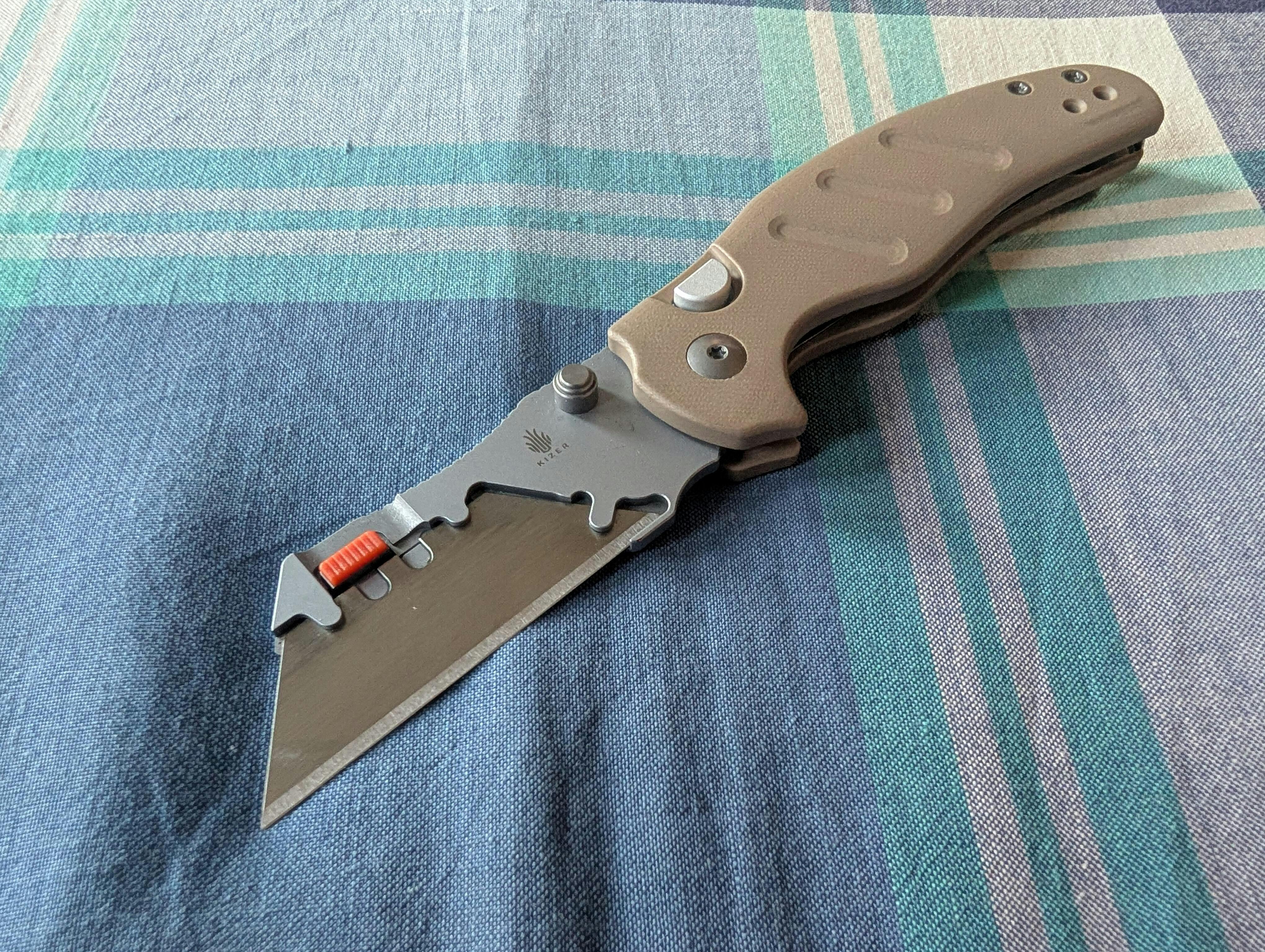 Chris Conaway’s legendary Sheepdog gets a hard-use upgrade with the Kizer C01C Uti 2 — leaner, tougher, and built for people who actually use their knives. This folder takes the cleaver-inspired silhouette of the original C01C and pairs it with a refined quick-swap 5Cr15MoV razor blade system, giving you a fresh, sharp edge whenever the job demands it. Ergonomic brown G10 scales lock solid in your hand, while the deep-carry reversible clip keeps it discreet and secure in your pocket. One-handed button liner lock deployment is smooth and fast, so you can get to work without fuss. Field-ready, unapologetically tough, and practical as hell — the C01C Uti 2 is the knife that earns its keep every day.