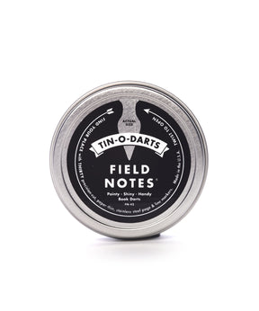 Our FN-45 âTin-O-Dartsâ is a seamless 2-1/2" pressed tin containing 30 gleaming stainless-steel Book Darts. Theyâre paper-thin and unobtrusive, but easy to find. They cling tightly to the page, but are easy to apply and remove without causing damage. Theyâre strong and reusable, so that seems like a lifetime supply. But maybe you better pick up a couple tins, because youâll find yourself giving them to curious friends â or leaving them to point at a particularly poignant passage indefinitely. Youâll find all sorts of uses for them. We love âem, and mark our words, you will too.