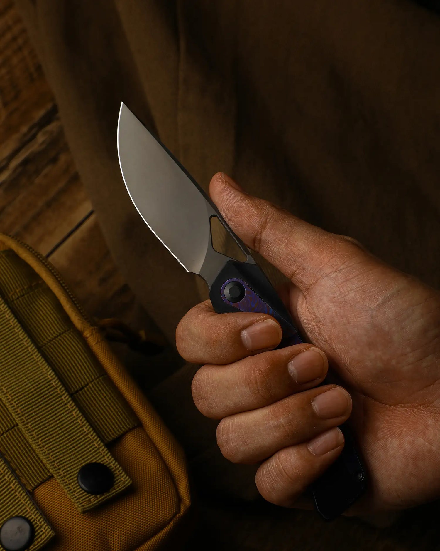 The Kizer Topsail is the latest creation from designer Jonathan Styles, known for the Militaw, Smolt, and Ara. This model carries forward his design mark of geometry, flow, and precision, expressed through bold lines and refined details. The Topsail blends everyday practicality with artistic flair for a true showpiece knife.