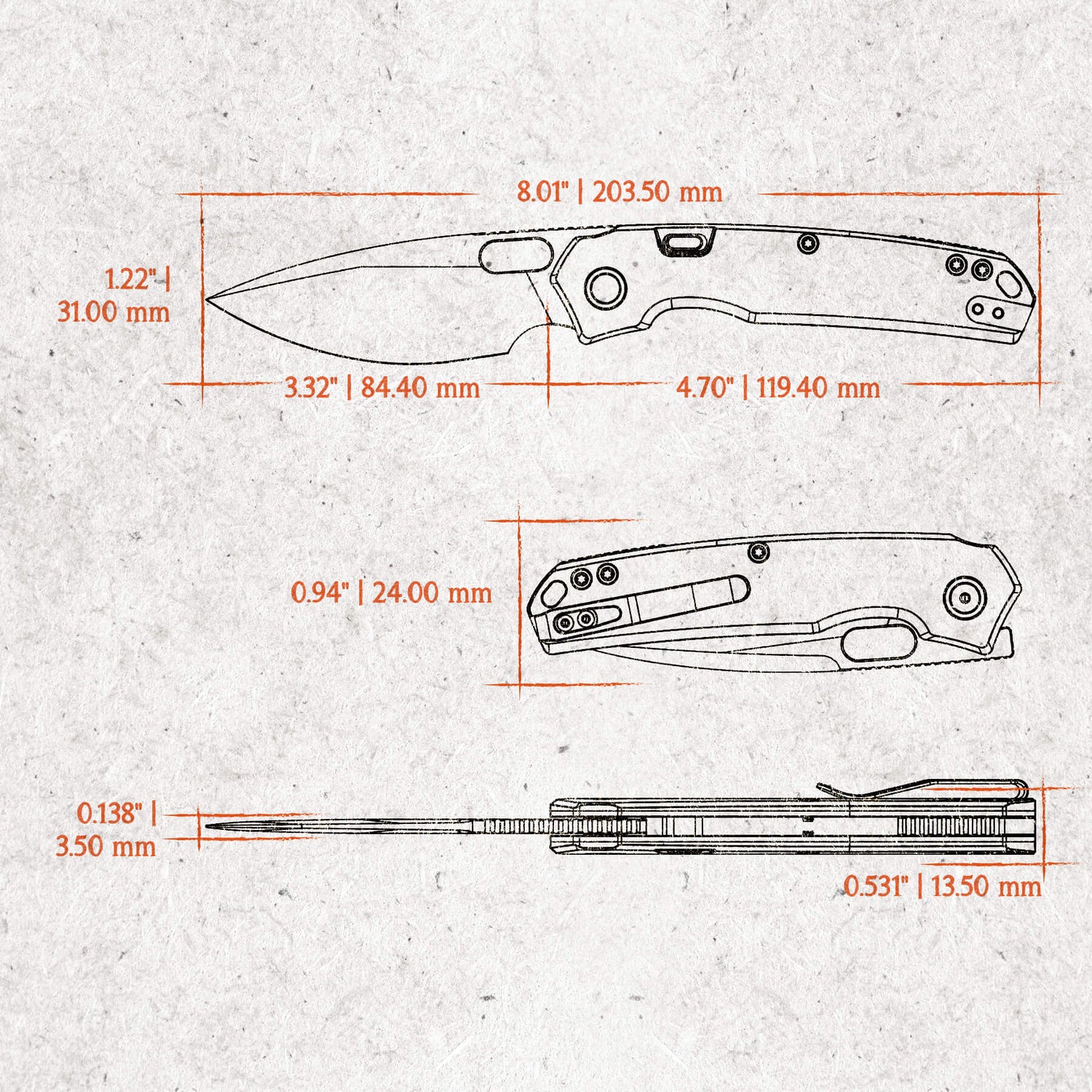 - Flat grind drop point – Clean slicer with a strong tip and effortless control.